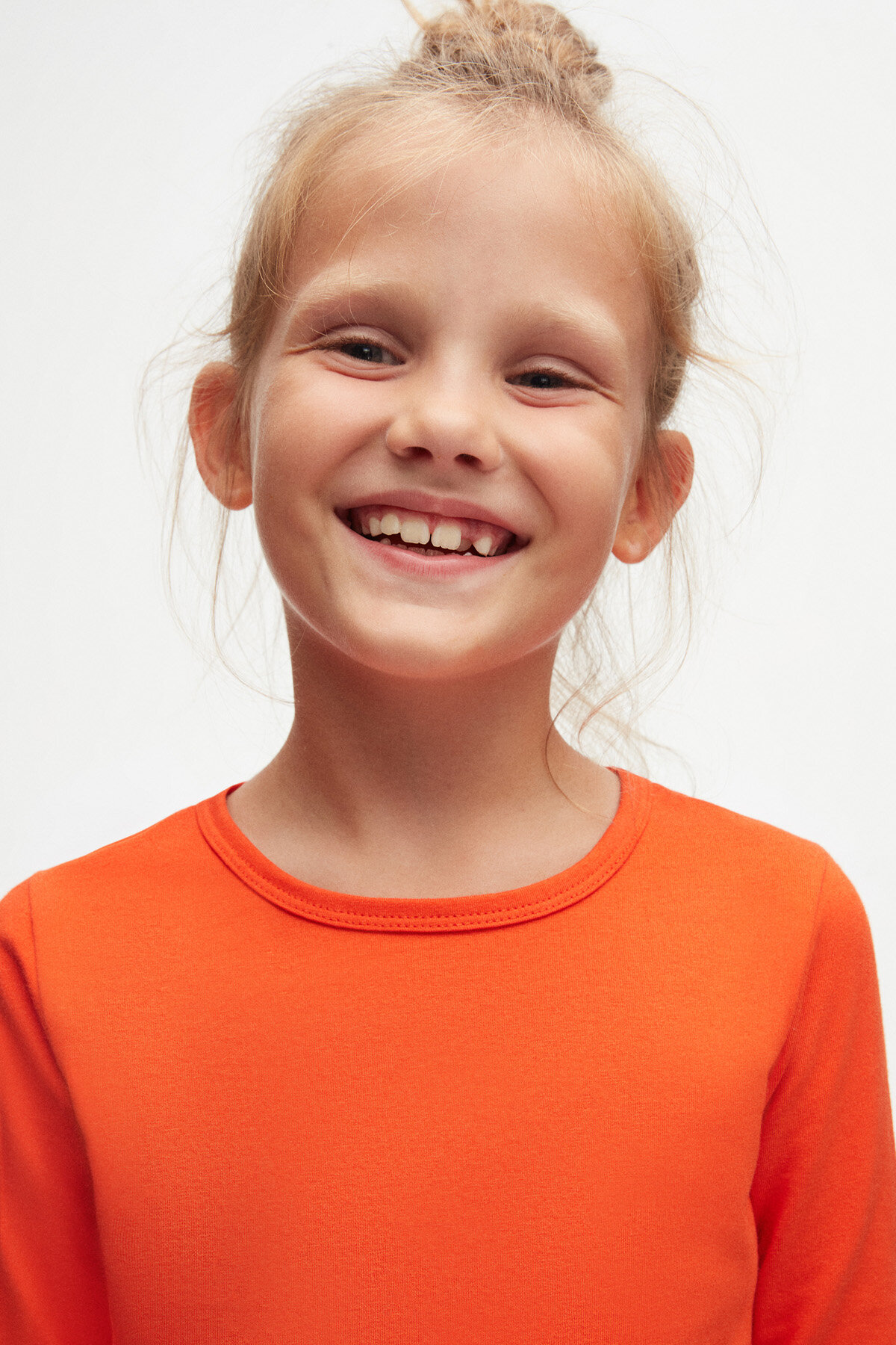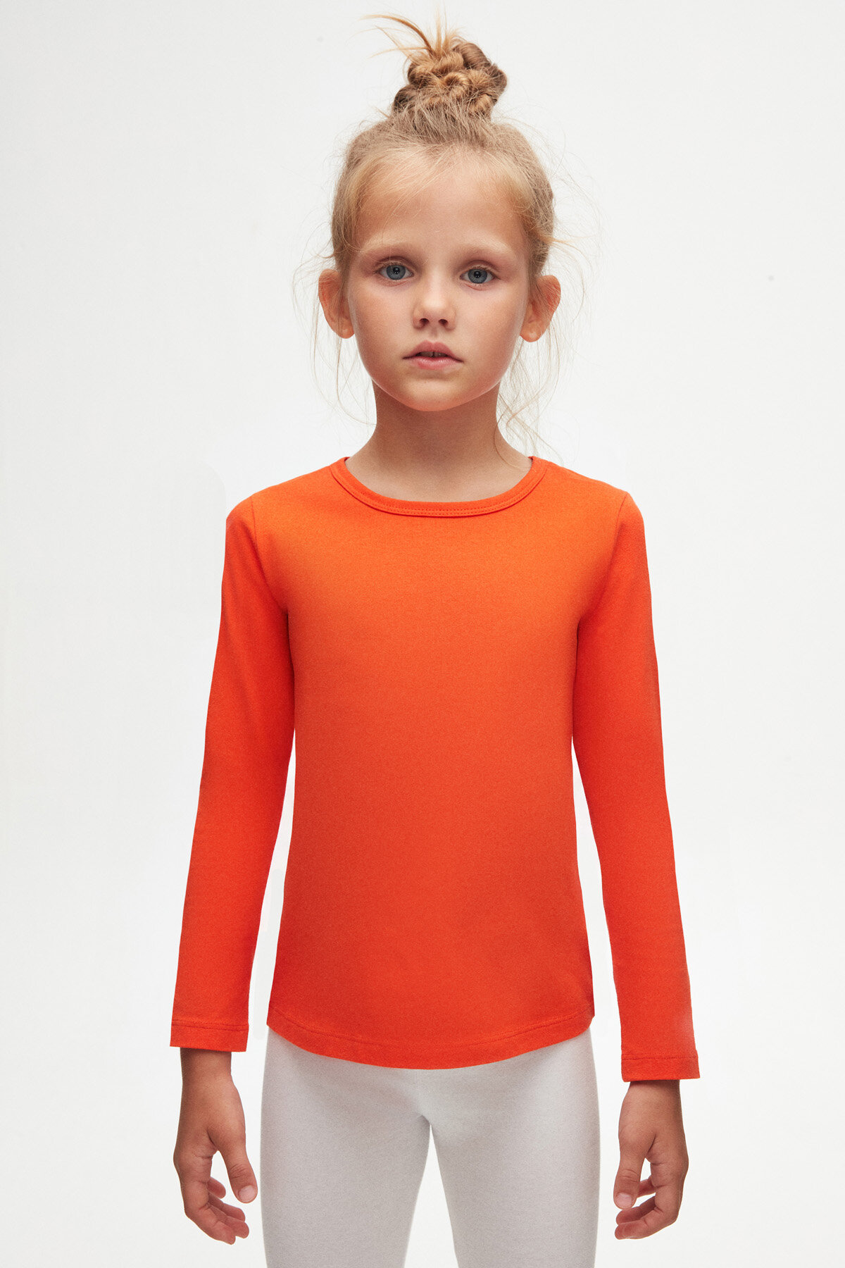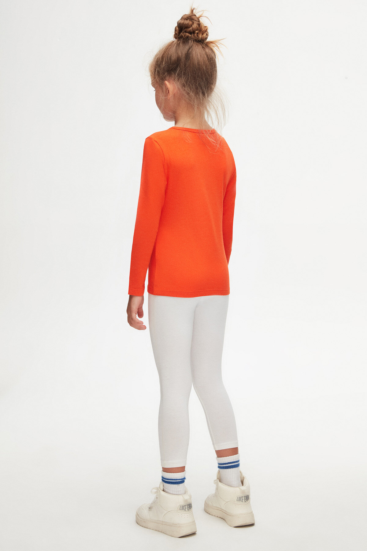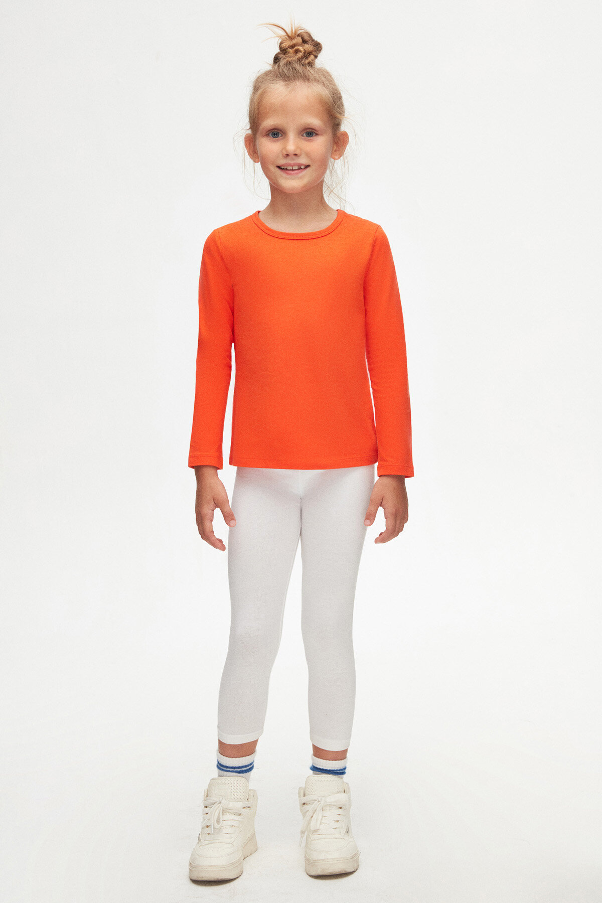 Turuncu Basic Mevsimlik Likralı Uzun Kollu Kız Çocuk Tişört